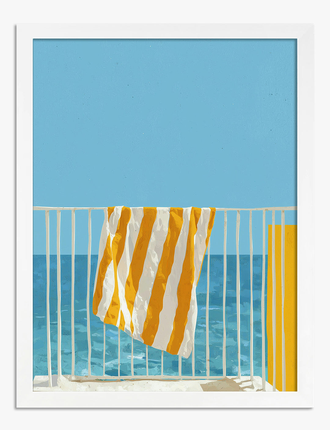 A burst of yellow and white stripes brings instant sunshine to your space, no matter the weather outside. This piece captures the effortless joy of a beachside escape—salty air, endless blue skies, and the gentle rhythm of waves just beyond a sun-drenched railing. Perfect for your living room or bedroom, it’s a daily reminder to slow down and savor the simple beauty around you. The crisp palette of sky blue, golden yellow, and clean white pops against any neutral or coastal-inspired decor, making your walls feel fresh and vibrant. Youll love how this print energizes your home, inviting you to relax, unwind, and let your personal style shine. Affordable, unique, and oh-so-easy to style—this is your shortcut to a breezy, feel-good transformation.