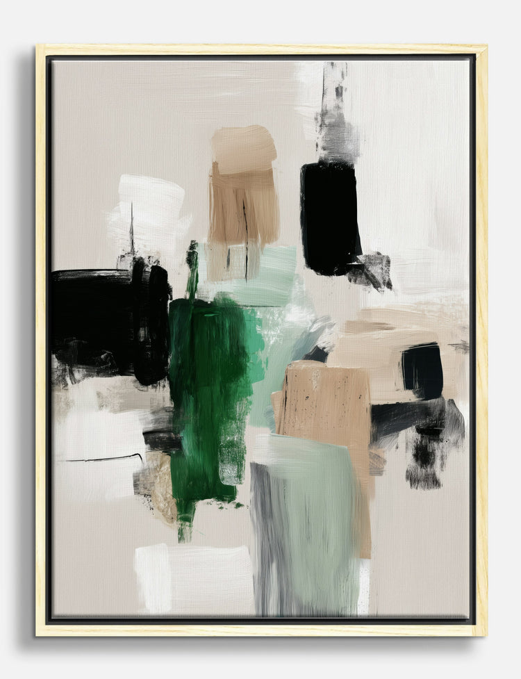 Bold brushstrokes and calming neutrals collide, bringing a gallery-chic vibe right into your home. This piece instantly grounds your space with its earthy beiges, deep blacks, and a lush pop of green—think of it as a style refresh, minus the renovation.