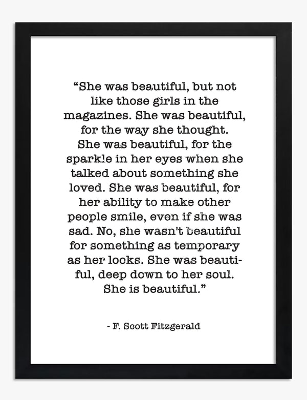 Lámina con cita inspiradora sobre la belleza interior, blanco y negro