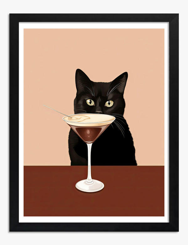 Black Cat with Espresso Martini Cocktail Art Print