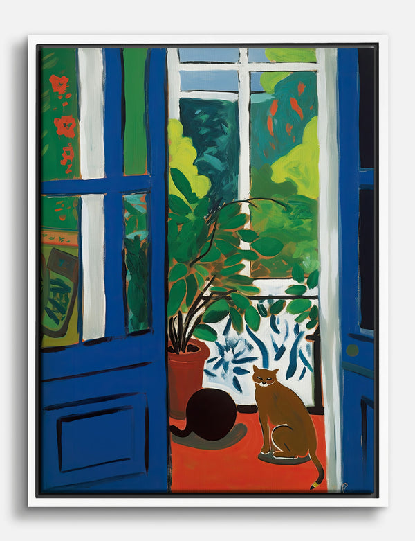 Sunny Doorway with Black Dog – Matisse Style Canvas Print