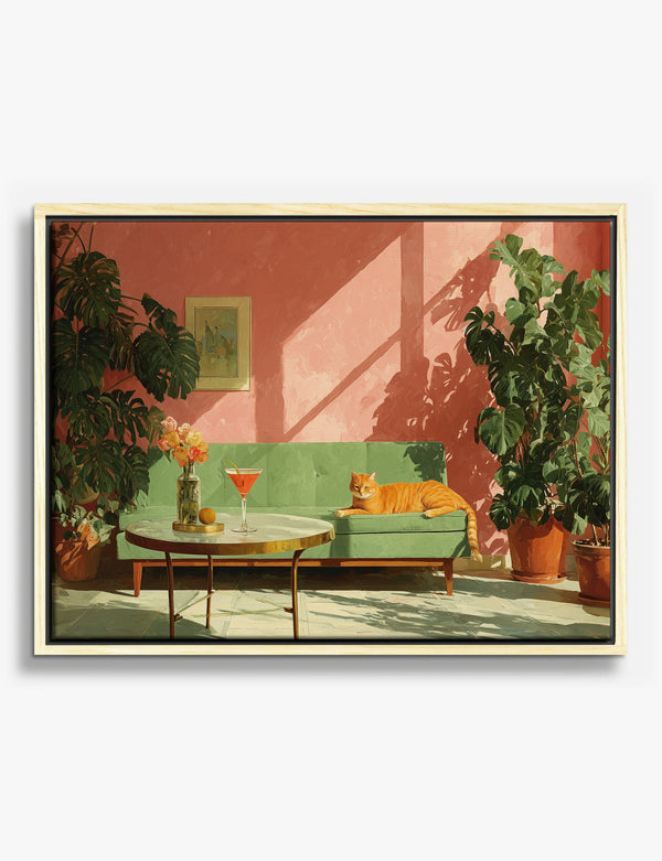 Sunlit Cat & Green Sofa Chic Canvas Print