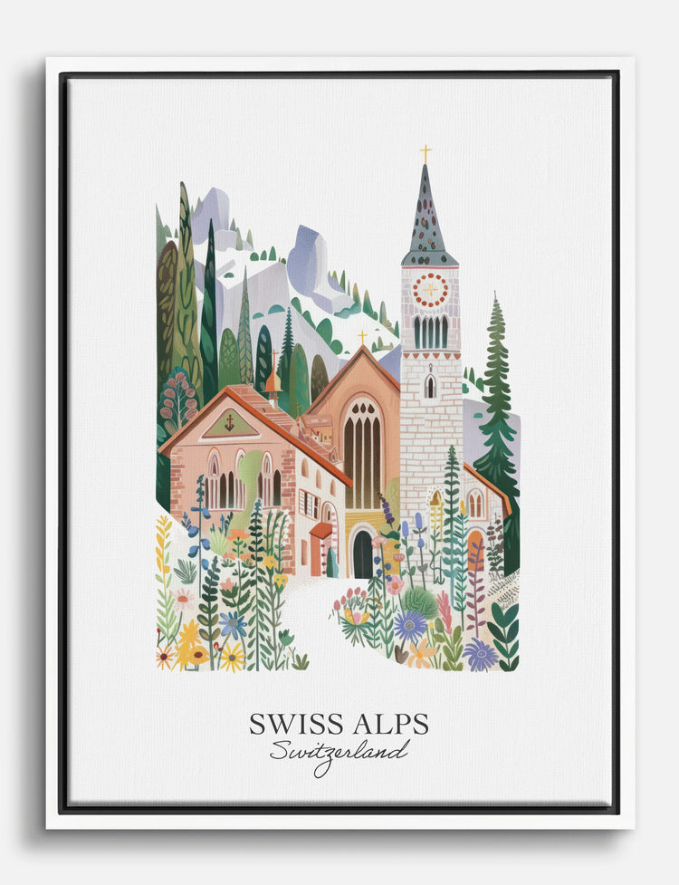 Nestled in the heart of your home, this enchanting depiction of the Swiss Alps brings a touch of serenity and timeless beauty to your space. The soothing hues and charming architecture invite you to escape into a world of tranquility and elegance. Perfect for your living room or bedroom, this piece effortlessly complements a range of decor styles, adding a unique and accessible touch of European allure to your home.