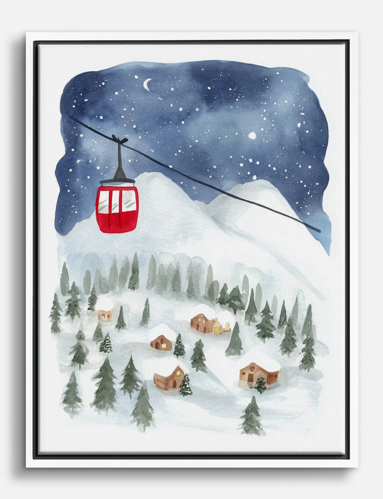 A glowing red gondola floats above a snow-dusted village, inviting you to relive the wonder of winter nights. This piece transforms your walls into a cozy alpine escape, where twinkling lights and soft pine trees create a sense of calm and togetherness. Perfect for your living room or bedroom, its soothing palette of midnight blues and crisp whites pairs effortlessly with both modern and rustic decor. Let it be your reminder of snowy adventures, warm cabins, and holiday joy—no matter the season. Bring home a touch of whimsical charm and make every day feel a little more magical. With Fab, you’ll find that style, comfort, and inspiration are always within reach.