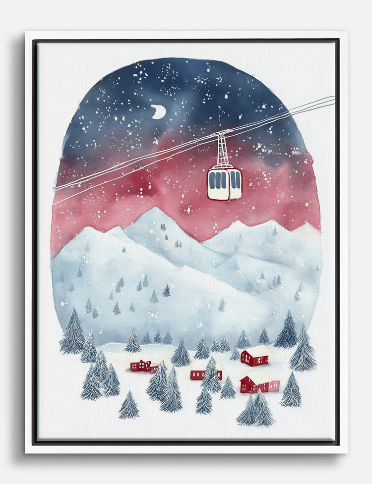 Under a shimmering night sky, a cozy mountain village glows in the quiet hush of winter. This enchanting watercolor instantly transports you to a peaceful world where snowy pines, gentle slopes, and twinkling stars invite you to slow down and savor the season. Perfect for your living room or bedroom, this piece brings a sense of calm wonder to any space—like a magical window to your own private winter getaway. The cool blues and soft reds pair beautifully with both modern and rustic decor, adding a touch of storybook charm without overpowering your style. Let this artwork inspire a little everyday magic and warmth, reminding you that home is where the heart—and the adventure—truly begins. With Fab, transforming your space is as easy as hanging something you love.
