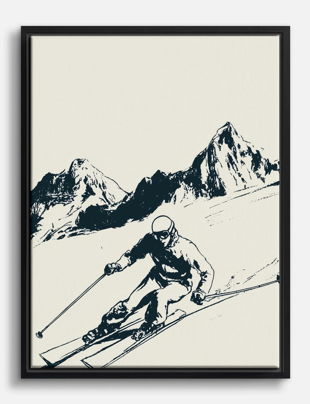 Feel the rush of crisp mountain air every time you glance at this striking piece. Clean lines and bold contrast capture the thrill of a skier carving down pristine slopes, set against majestic peaks. It’s a visual celebration of adventure and movement, perfect for anyone who loves the call of the outdoors. This artwork brings an energizing spirit to your living room, office, or even a home gym—anywhere you want to spark motivation and pride. The minimalist black-and-white palette slips seamlessly into modern or rustic spaces, adding a cool edge without overwhelming your decor. Let your walls speak to your sense of adventure. With this unique print, you’ll transform your space into a stylish retreat that feels bold, fresh, and uniquely you.