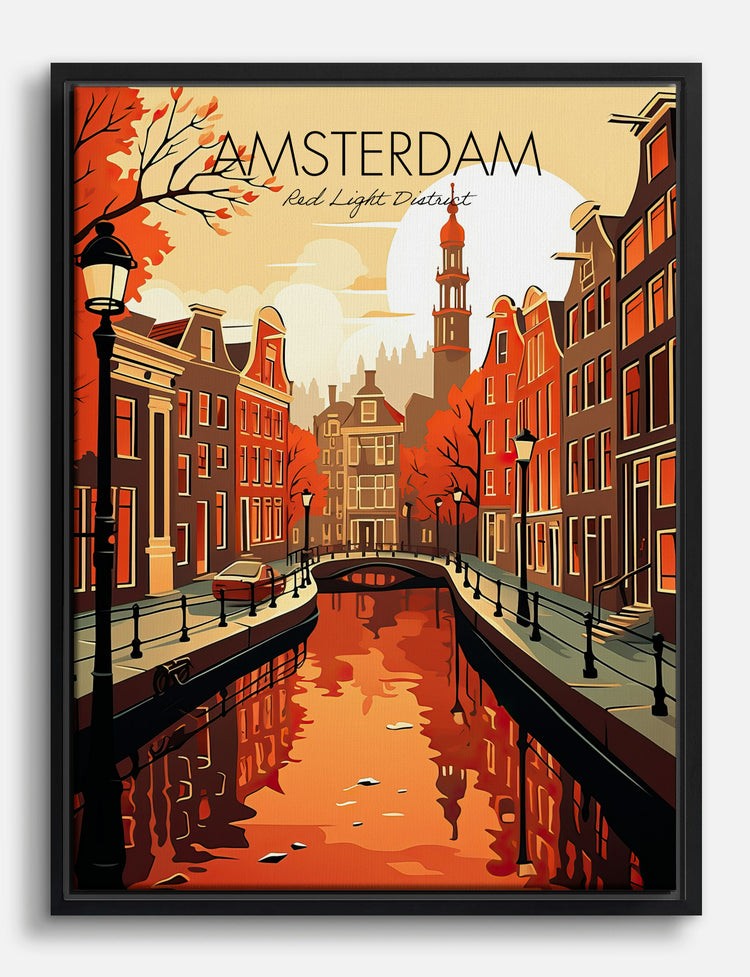 Golden sunlight spills across the iconic canals of Amsterdam, bringing warmth and energy to any space. This vibrant scene instantly transports you to charming city streets lined with glowing row houses and crisp autumn leaves. Hang it in your living room or office for a daily dose of wanderlust and European flair—no passport required. The bold orange and red palette pops against neutral walls and pairs effortlessly with modern or vintage décor, making your home feel both unique and inviting.