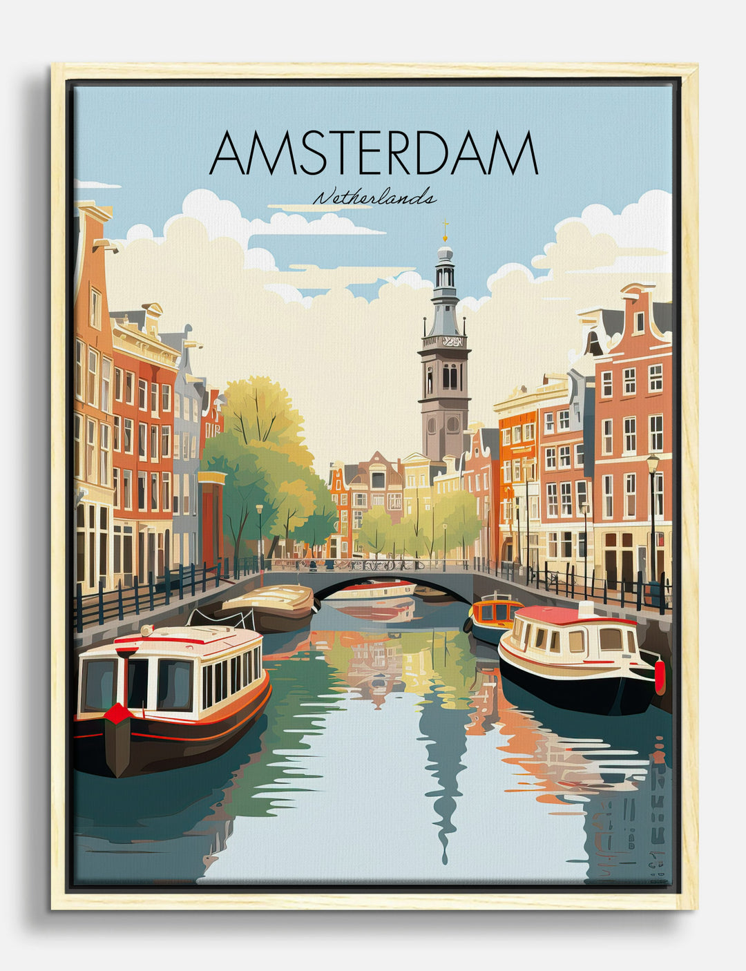Step into the sunny heart of Amsterdam every time you walk by this piece. Lively boats glide along shimmering canals, surrounded by cheerful townhouses and leafy trees—there’s a sense of adventure and laid-back joy that instantly brightens your space.