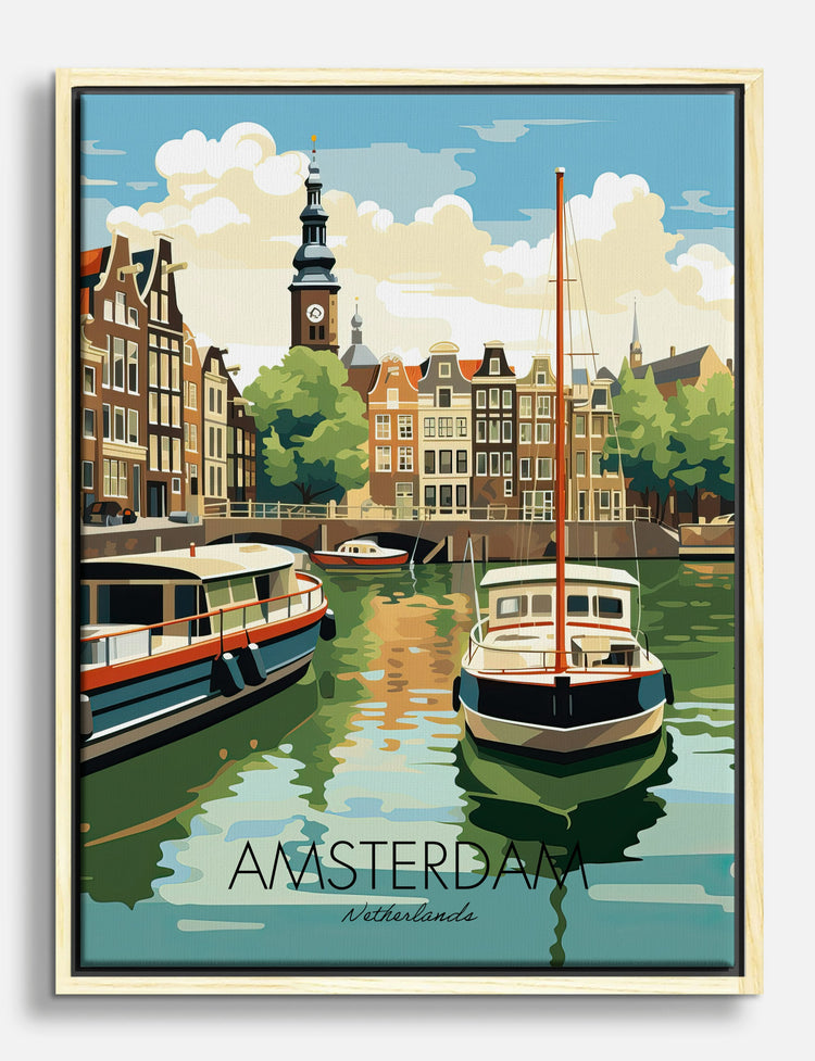 Step into the lively spirit of Amsterdam every time you walk by this piece. Elegant canal boats and iconic Dutch architecture bring a splash of wanderlust to your walls, making any room feel a little more adventurous. The inviting palette of blues, greens, and warm neutrals pairs effortlessly with both modern and classic decor. Hang it in your living room or office to spark conversation and transport your space to the heart of the Netherlands—no passport required.