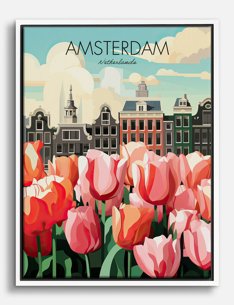 Step into a world where spring never ends—vivid tulips burst with color against Amsterdam’s iconic canal houses, creating a scene that feels both fresh and timeless. This piece instantly energizes your space, making your living room or entryway feel open, bright, and uniquely yours. The playful palette of pinks, corals, and greens pairs effortlessly with modern or vintage decor, so you can show off your style and bring a bit of European flair home. With Fab, transforming your walls is as easy as falling in love with Amsterdam’s charm.