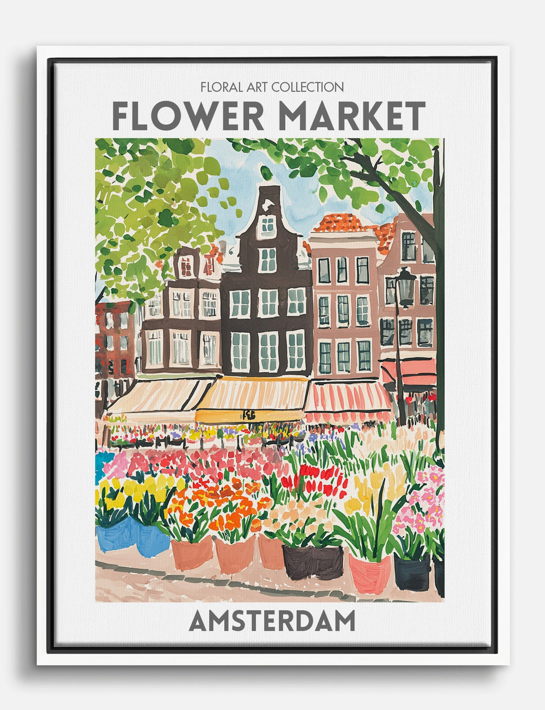 Step into the vibrant heart of Amsterdam with this delightful piece that captures the essence of a bustling flower market. Perfect for your living room or hallway, its lively colors and charming cityscape bring a sense of joy and energy to any space. The warm palette complements both modern and vintage decor, making it a versatile addition to your home. Let this artwork transport you to a place of beauty and wonder every day.