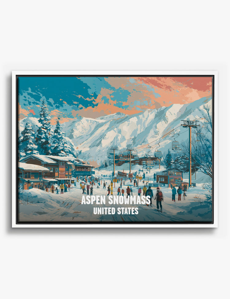 Step into a snow-dusted wonderland every time you look at your wall. This lively Aspen scene brings the magic of winter vacations straight into your home, capturing the buzz of ski season and the quiet beauty of mountain mornings. The soft blues and warm peach skies set a cozy, inviting mood—perfect for your living room or entryway, where you want guests to feel instantly welcomed. The color palette pops against modern neutrals or rustic wood accents, making it effortless to style with your favorite décor. Whether youre dreaming of your next snowy getaway or just want a touch of alpine adventure, this piece adds a spark of joy and wanderlust to your everyday space. Let your home reflect your love for travel, fun, and unforgettable moments.