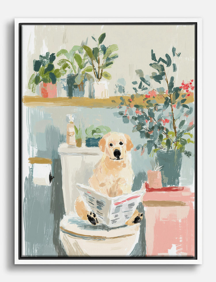 Who says style can’t have a sense of humor? This playful scene features a golden retriever caught mid-read, bringing a smile to even the most routine moments. Imagine the instant lift this piece gives your bathroom or powder room—suddenly, your space is both chic and totally unexpected.