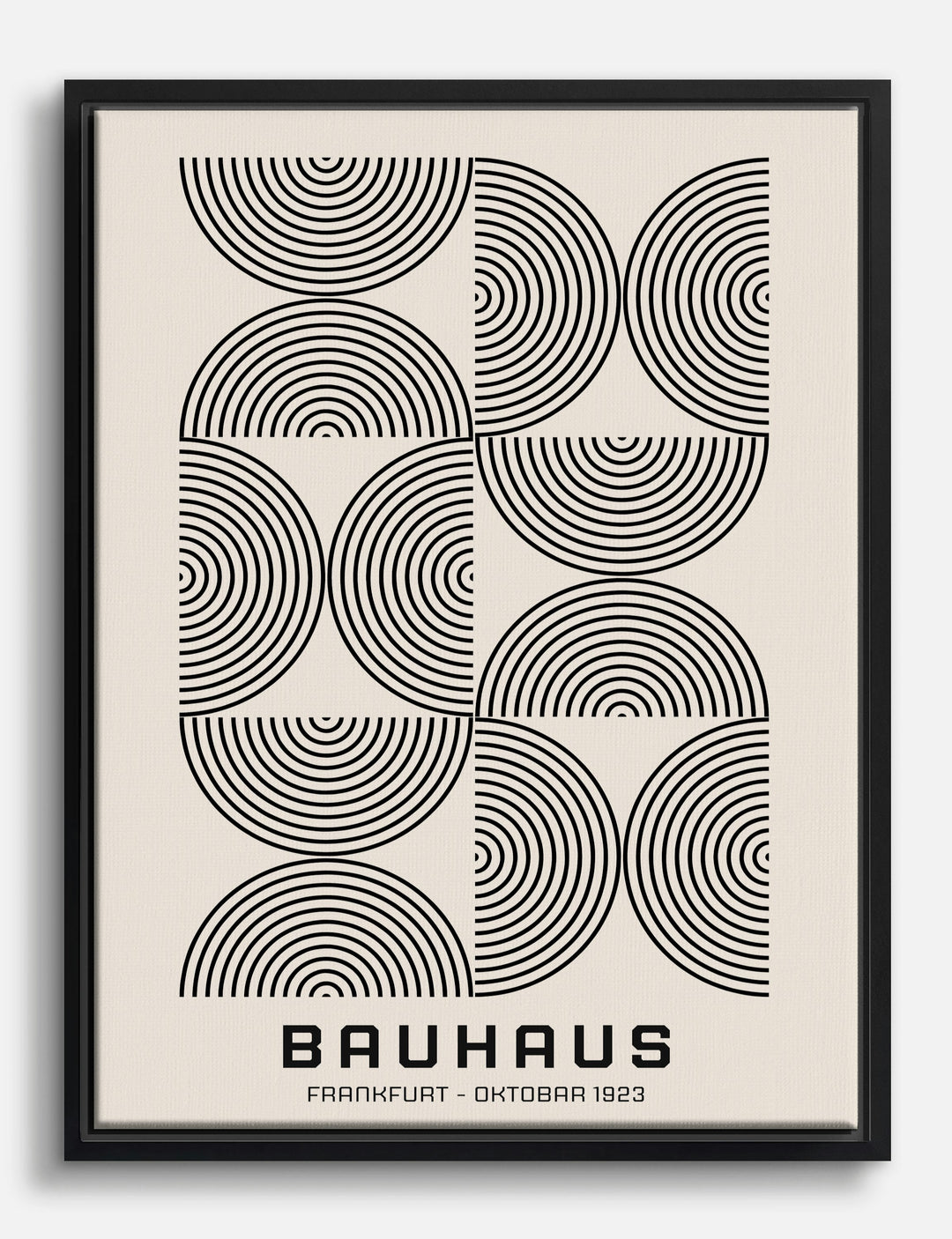 Bold lines, clean curves, endless possibilities—this piece channels the iconic spirit of Bauhaus right into your space. With its hypnotic, black concentric circles and half-moon forms, it instantly energizes any wall and invites a sense of order and creativity.