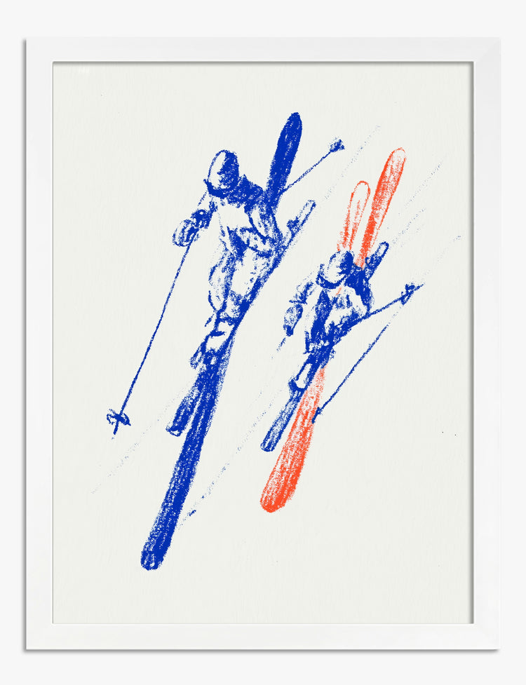 Feel the rush of winter adventure every time you walk by. Two skiers, captured in energetic red and blue, seem to race right off the wall, bringing a sense of movement and excitement to your space. This piece instantly livens up any room, making it perfect for your living room or home office. The crisp, minimal palette is both modern and timeless—effortlessly complementing neutral tones or providing a playful pop in bolder, eclectic decors. You’ll love how it sparks conversation and invites a sense of freedom, speed, and sporty pride into your home. Hang it where you want a boost of energy and a reminder that your home is your playground. With Fab, transforming your space into something uniquely you is as easy as a fresh run down the slopes.