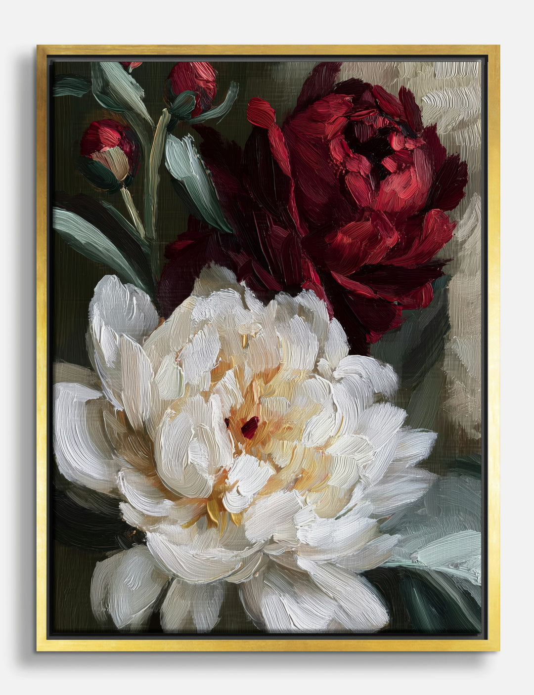 Burgundy & Ivory Peonies Canvas Print