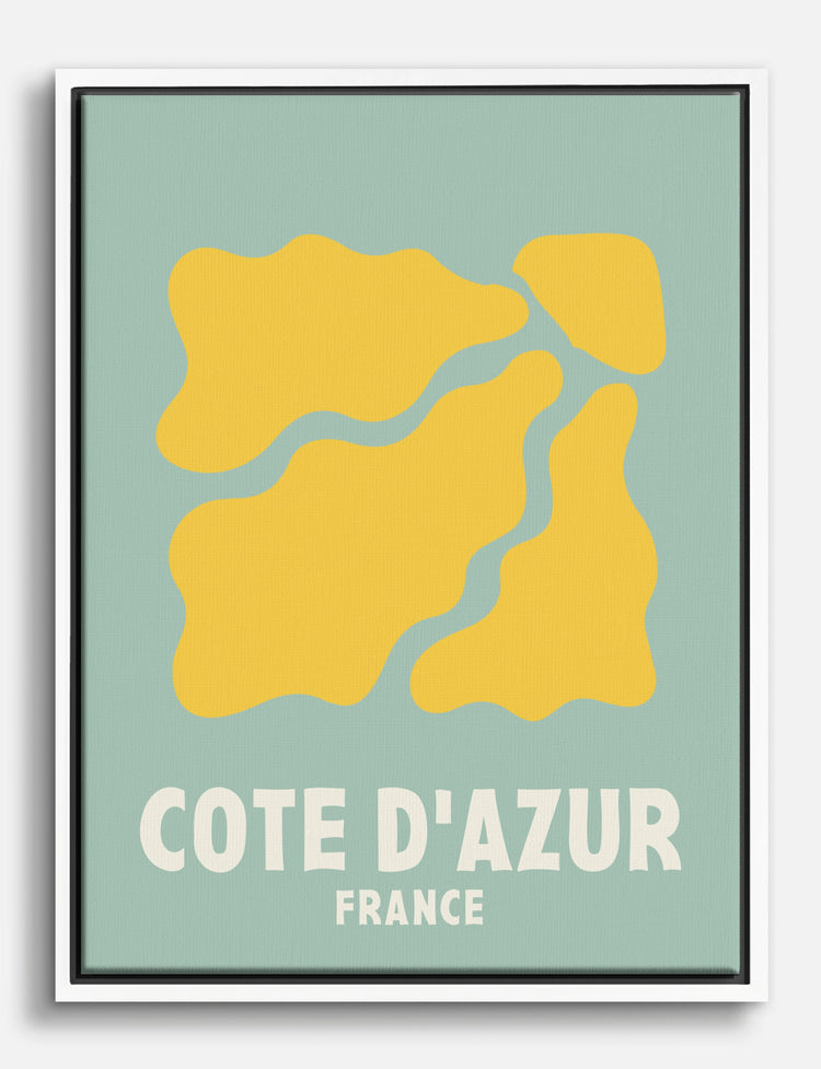 Golden shapes ripple like sunlit waves—bringing a burst of French Riviera warmth right into your space. This playful modern print instantly energizes a living room or brightens up your favorite reading nook, infusing your home with a touch of coastal chic. The soft aqua background and sunny yellow accents pair effortlessly with both minimalist and eclectic decor, making your walls feel fresh, unique, and unmistakably you. Transform your everyday with a piece that radiates effortless style and joy.