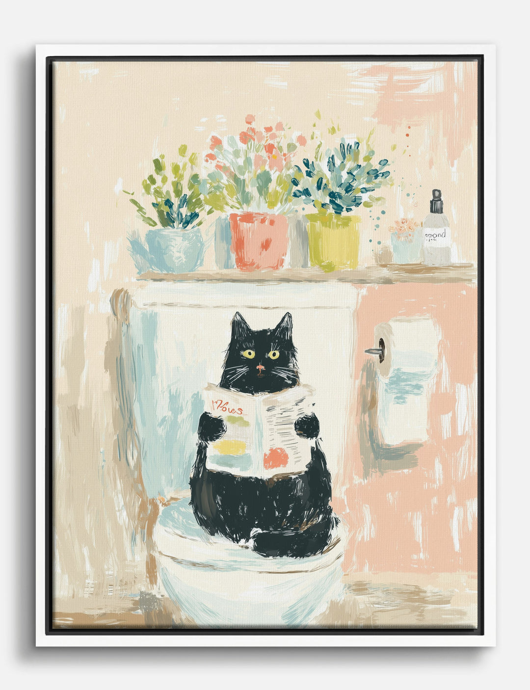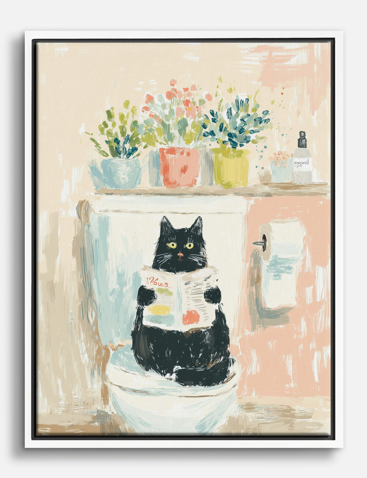 Who says style can’t have a sense of humor? This playful piece captures a black cat caught mid-read, adding instant charm and personality to your space. The soft, painterly brushstrokes and gentle pastels create a cozy, inviting vibe—perfect for those looking to sprinkle a little joy into everyday moments.