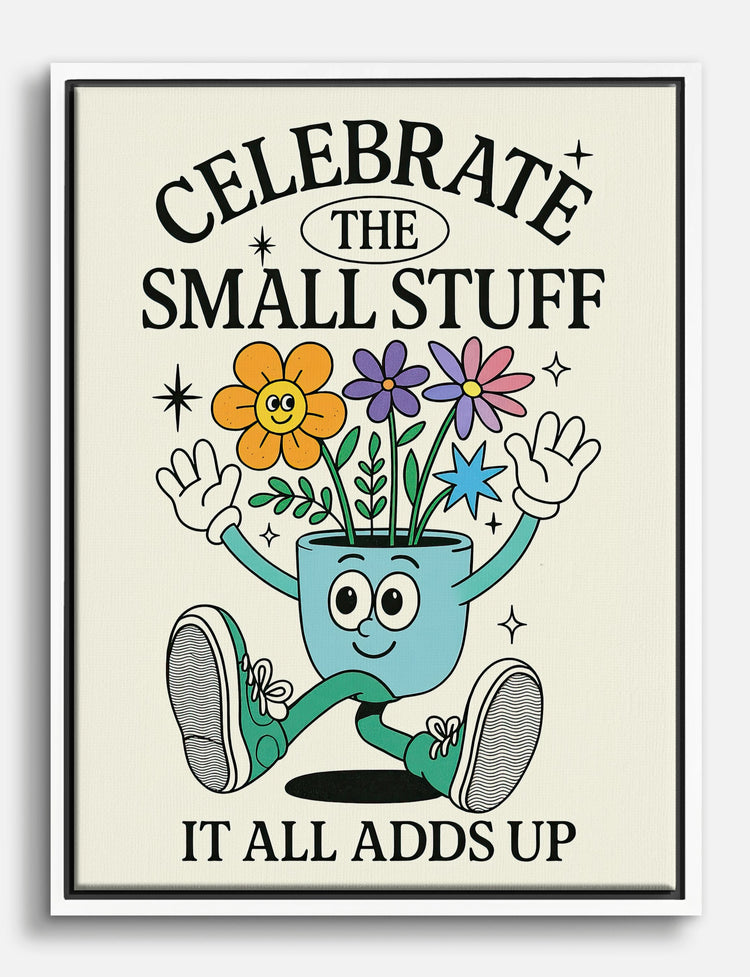 Big joy lives in the little moments. This playful print bursts with cheerful color and upbeat vibes, reminding you that happiness isn’t just in the milestones — it’s in the small stuff, too. The smiling flower pot and cartoon blooms instantly energize any wall with lighthearted charm.