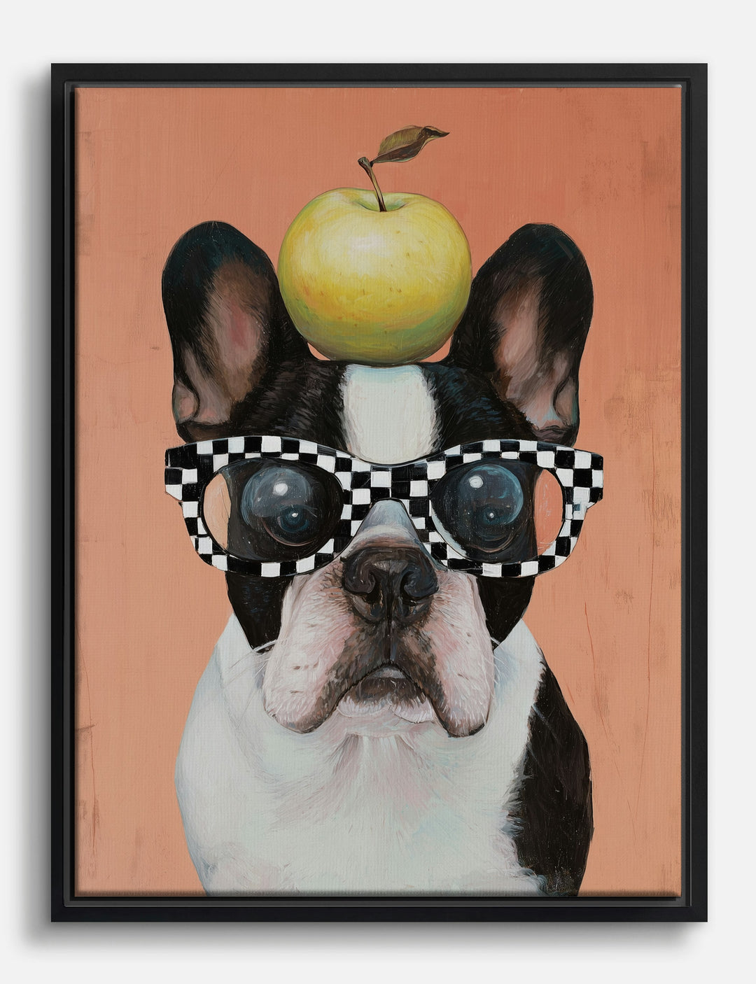 Who says art cant make you smile every day? Meet your new favorite wall guest—a stylish French bulldog rocking checkered glasses and balancing an apple with pure, quirky confidence. This piece is all about personality and play, ready to bring a burst of fun to your walls.