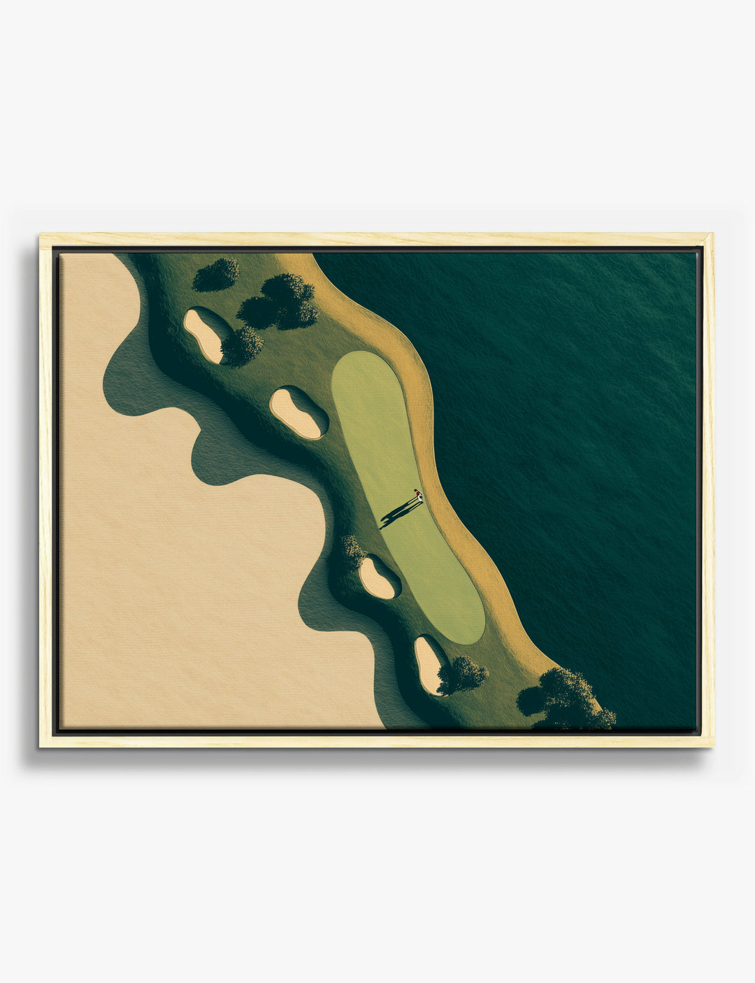 A striking aerial view meets tranquil vibes in this unique piece, where the lush green of a golf course nestles perfectly between sweeping sand and deep blue water. It’s a bold statement for anyone who loves a little adventure with their relaxation. Let this artwork bring an instant sense of calm and understated luxury to your living room or office. The organic shapes and soft, natural palette make it easy to pair with both modern and minimalist decor, while the unexpected perspective adds a dash of conversation-starting style. You’ll love how effortlessly this piece transforms your space—inviting you to pause, breathe, and imagine new horizons every day. Who knew your walls could inspire both pride and a sense of escape?