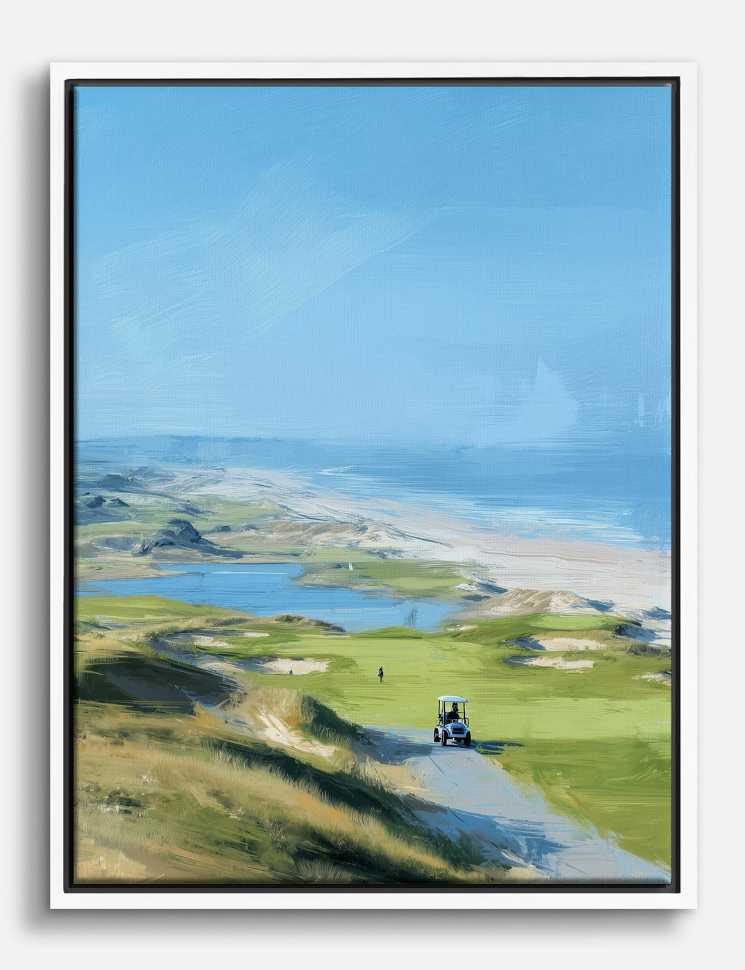 Rolling greens meet endless sky in this breezy view, where every glance feels like a breath of fresh air. If you crave a space that feels open, uplifting, and effortlessly chic, this piece is your secret weapon. The gentle blues and sunlit greens bring a relaxed, coastal vibe that instantly softens any room.