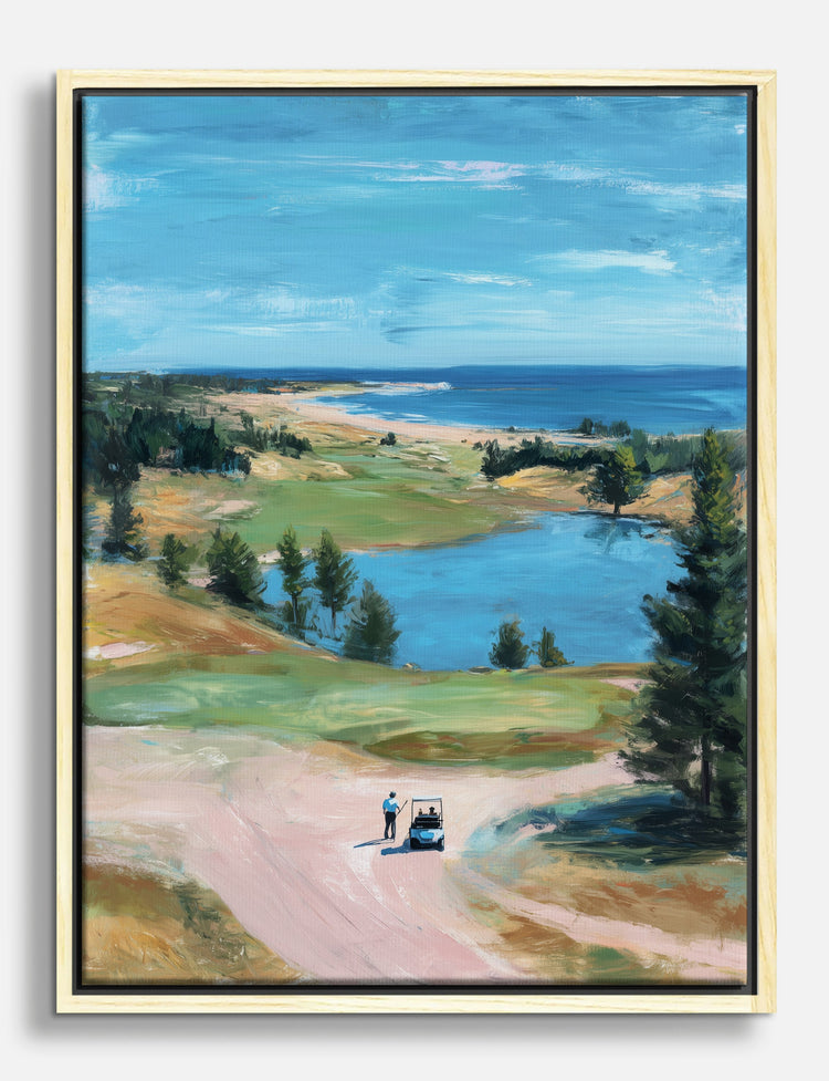 A moment of calm, a rush of blue—this piece captures the tranquil beauty of a day on the green, where sky meets water and the world feels wide open. Youll sense the gentle breeze and sunlit warmth every time you glance its way.
