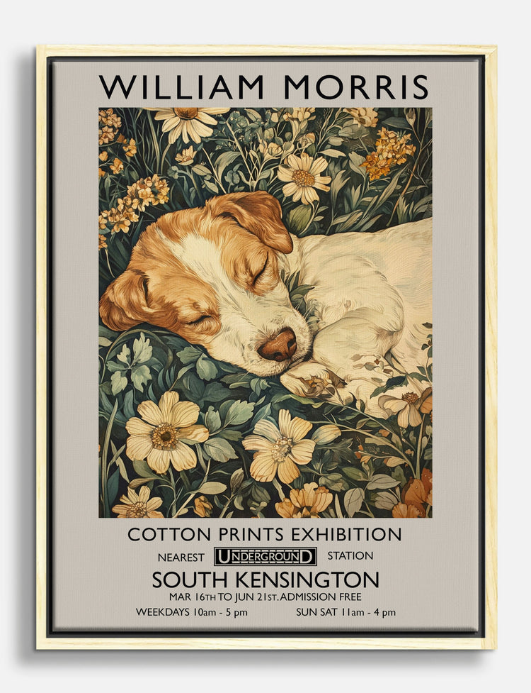 Let your space breathe with the dreamy charm of this William Morris-inspired piece. A serene pup rests amidst a tapestry of delicate florals, infusing your home with warmth and tranquility. Perfect for your living room or bedroom, its soothing hues harmonize effortlessly with any decor, offering a touch of timeless elegance. Celebrate your unique style while transforming your space into a haven of comfort and joy.