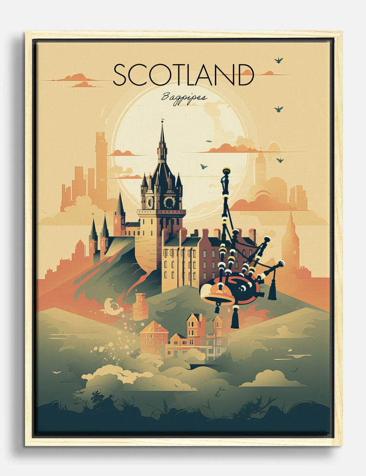 Bold silhouettes and dreamy pastels set the stage for your next great conversation piece. This vintage-inspired scene of Scotland’s iconic landmarks and bagpipes brings instant storybook charm to your walls. Perfect for the living room or entryway, its warm golds and subtle greens effortlessly blend with both modern and classic decor. You’ll feel a sense of pride and adventure every time you walk by—proof that authentic style is just one print away.