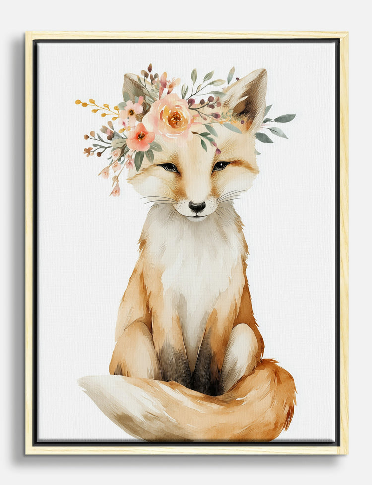 Meet the fox that adds instant warmth and whimsy to any space. Delicate watercolor strokes and a crown of blush blooms give this gentle creature an irresistibly friendly vibe, perfect for softening up your bedroom or nursery.