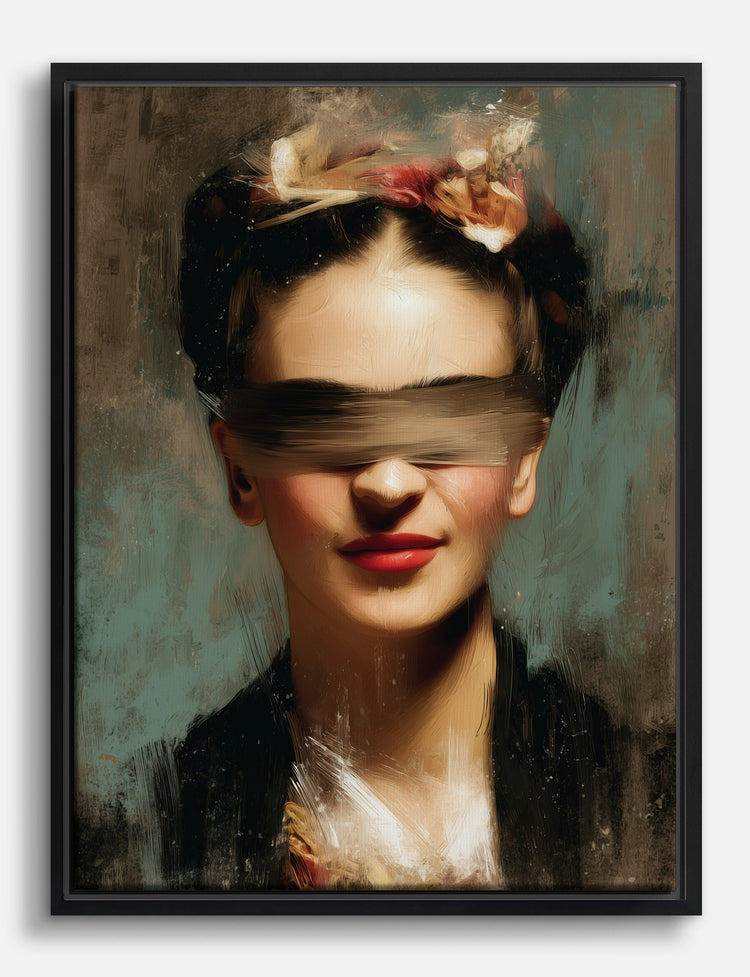 A rush of confidence sweeps through your space with this striking, modern take on Frida Kahlo. The blurred eyes add a touch of mystery, inviting you to interpret the story behind the legendary icon.