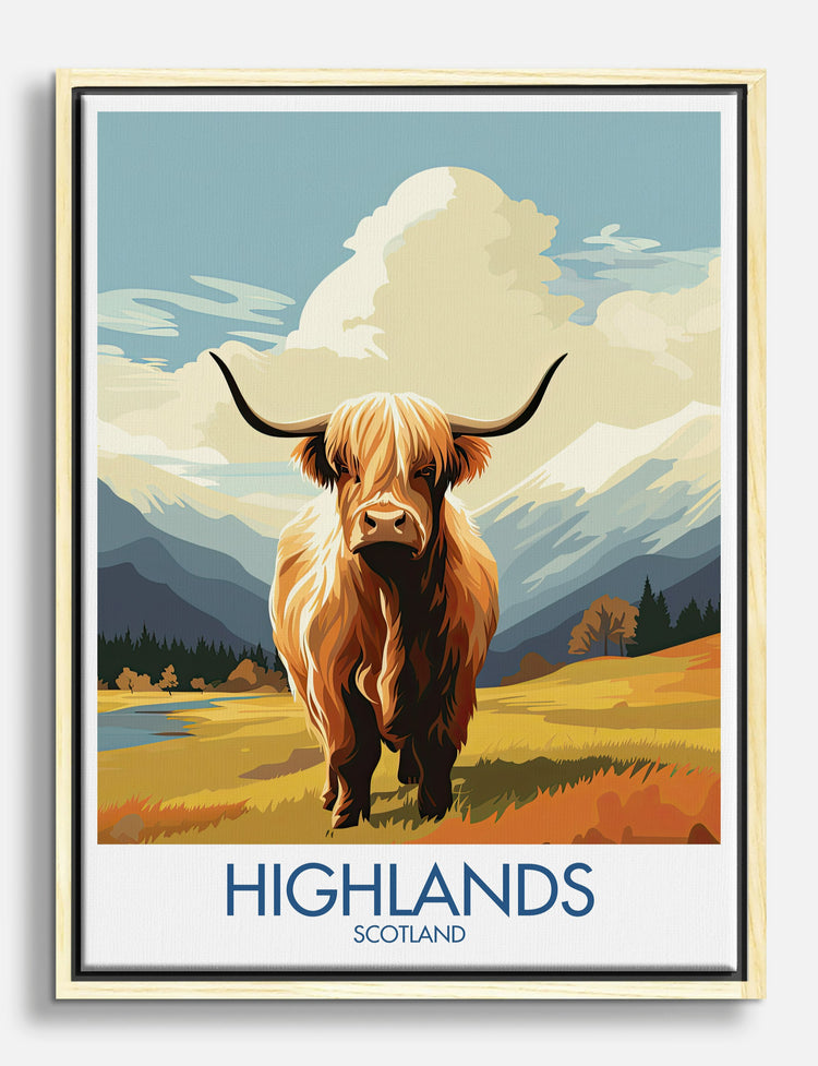 Bring a touch of wild Scottish spirit to your home with this striking Highland cow set against sweeping mountains and golden fields. It’s more than just a print—it’s a daily reminder of adventure and calm, perfect for anyone craving a little escape.