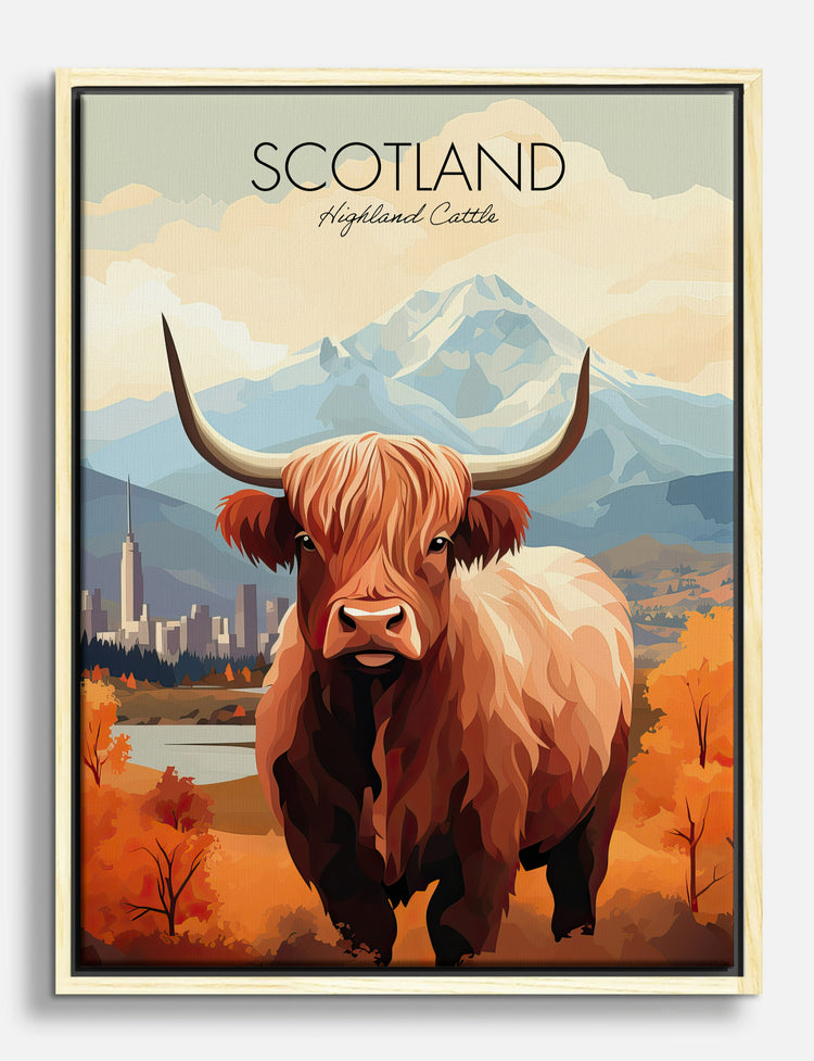 Bold, beautiful, and unmistakably Scottish — this piece captures the wild spirit of the Highlands with a striking Highland cow set against dramatic mountains. Warm amber and russet tones pop with energy, instantly transforming your living room or entryway into a cozy statement of wanderlust and tradition.