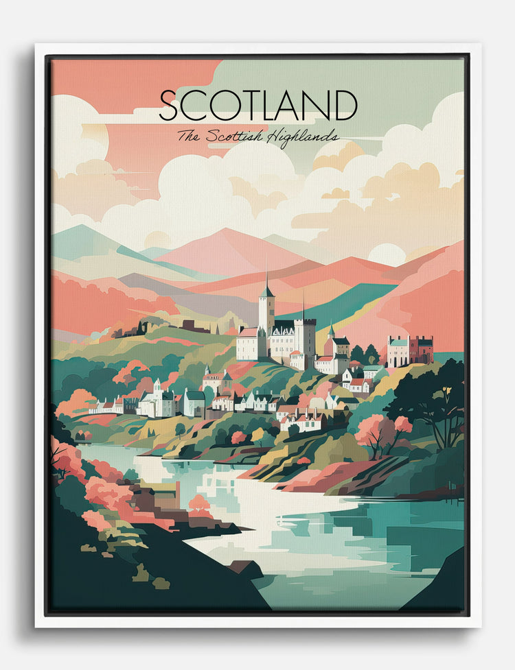 A sweep of pastel pinks and greens brings the Scottish Highlands to life, wrapping your space in a warm, storybook charm. This piece instantly brightens any room with its inviting village, tranquil river, and rolling hills—perfect for adding a touch of wanderlust to your living room or bedroom. The soft, modern palette effortlessly complements everything from cozy neutrals to bold accent walls, so you can style your home with confidence and ease.