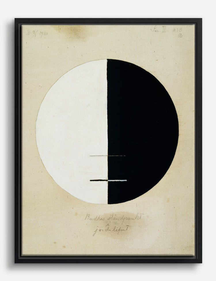 Bold simplicity meets spiritual intrigue in this striking Hilma af Klint piece. A perfectly divided circle in crisp black and white draws your eye, inviting you to pause and reflect.