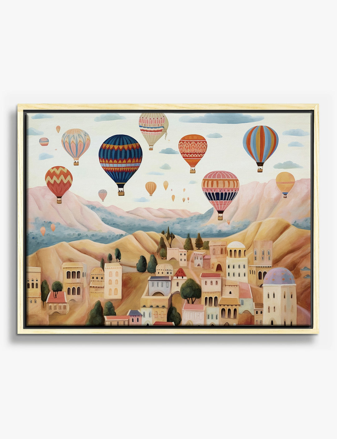 Why settle for ordinary when your walls can take you on an adventure? This playful scene of vibrant hot air balloons floating above a sun-drenched hillside village instantly lifts your space—and your spirits. Soft peach and sandy tones mingle with pops of blue and coral, making this piece a natural fit for cozy living rooms or dreamy bedrooms. It’s perfect for anyone who loves a hint of wanderlust in their everyday. Let this charming artwork remind you that every day holds a little magic, right at home. You’ll love how easily it complements both modern and boho decor, adding a touch of warmth and personality wherever it lands.