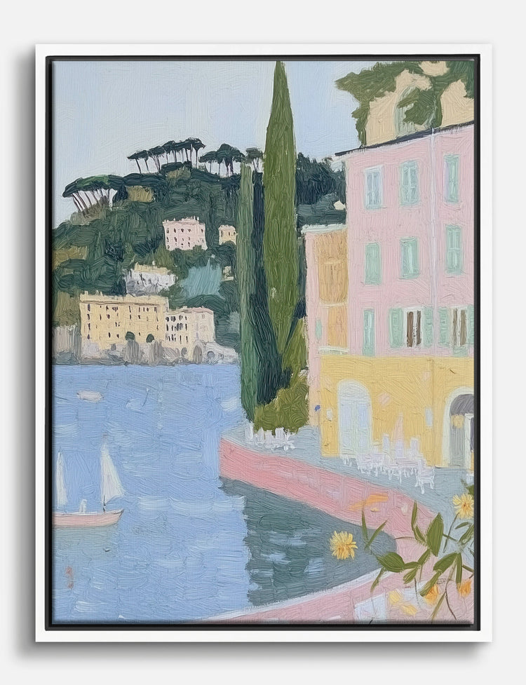 Step into the sun-soaked charm of the Italian coast every time you walk by this piece. Soft pastels and tranquil blues bring a relaxed, holiday feeling to your space—no passport required. Whether you hang it in your living room or bedroom, this artwork instantly brightens your home and makes every day feel a little more special. Its gentle palette pairs beautifully with modern or vintage decor, making your style feel effortlessly elevated and uniquely yours.