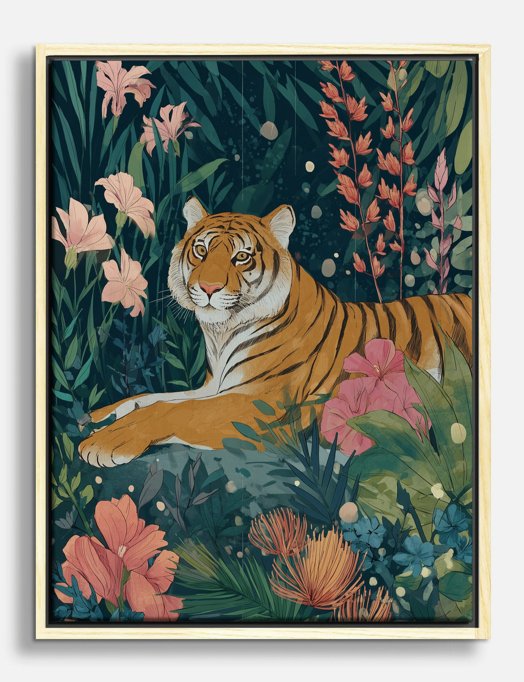 This piece invites the wild beauty of the jungle right into your home. A poised tiger lounges amidst a lush tapestry of vibrant florals and deep greenery, radiating quiet strength and a touch of mystery. The rich color palette—lush greens, warm oranges, and soft pinks—makes it a statement-maker for any wall, instantly energizing your space. Imagine this artwork as the centerpiece in your living room or bedroom, adding a sense of adventure and confidence to your daily routine. It’s perfect for anyone who wants their home to feel bold, unique, and full of life. Let your personality shine through with art that’s as expressive and fearless as you are. With Fab, making your home feel truly yours is easier (and more affordable) than ever.