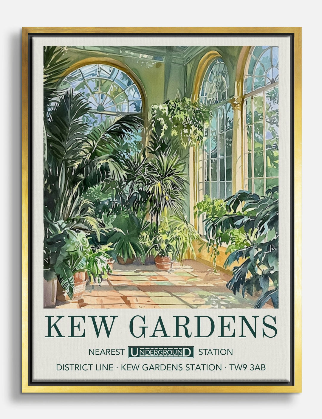 Step into a lush oasis with this captivating piece that brings the tranquility of Kew Gardens into your home. Sunlight filters through the grand windows, illuminating a tapestry of vibrant greens that energizes any room. Perfect for a living room or office, this artwork complements both modern and vintage decor with its graceful palette of greens and earthy tones. Let it inspire a sense of pride and joy as you transform your space into a serene botanical haven.