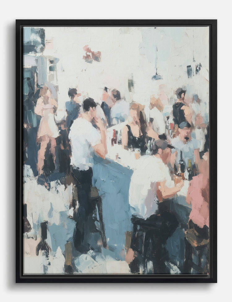 A swirl of laughter, clinking glasses, and easy conversation—this piece captures the electric pulse of a bustling London pub. Perfect for your living room or dining area, it adds a dash of warmth and energy, turning any wall into a lively social hub.