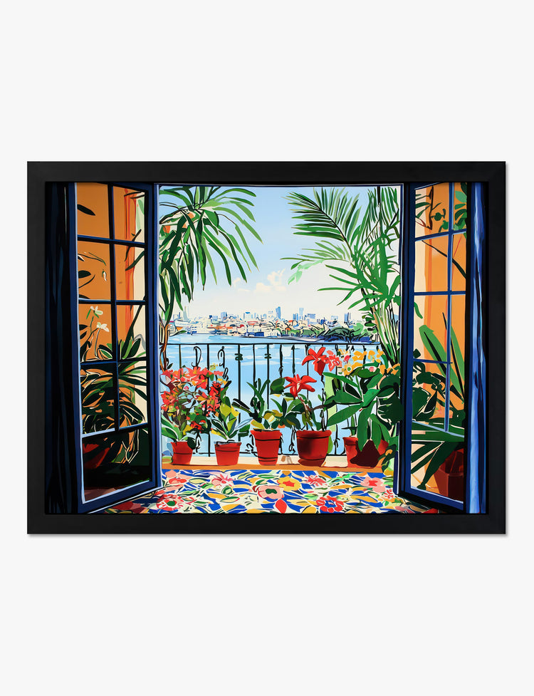 Step through this vibrant window and let your space bloom with color and life. Lush green palms, fiery red flowers, and a sunlit city beyond invite you to soak up a Mediterranean vibe without ever leaving home. Perfect for your living room or bedroom, this piece instantly energizes any wall and brings a fresh, vacation-ready spirit into your everyday. The lively palette pops against both neutral and bold decor, making it an effortless upgrade for your style. Youll feel a renewed sense of pride every time you see this scene—a daily reminder that your home can be your happiest place. With Fab, transforming your space into an oasis of joy is as easy as hanging a picture.