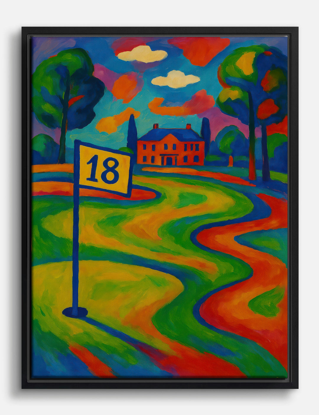 Step into a world where color takes the lead and every day feels like the final round. This bold, Matisse-inspired scene brings the energy of the 18th hole right into your living space, bursting with vibrant blues, fiery reds, and lush greens.