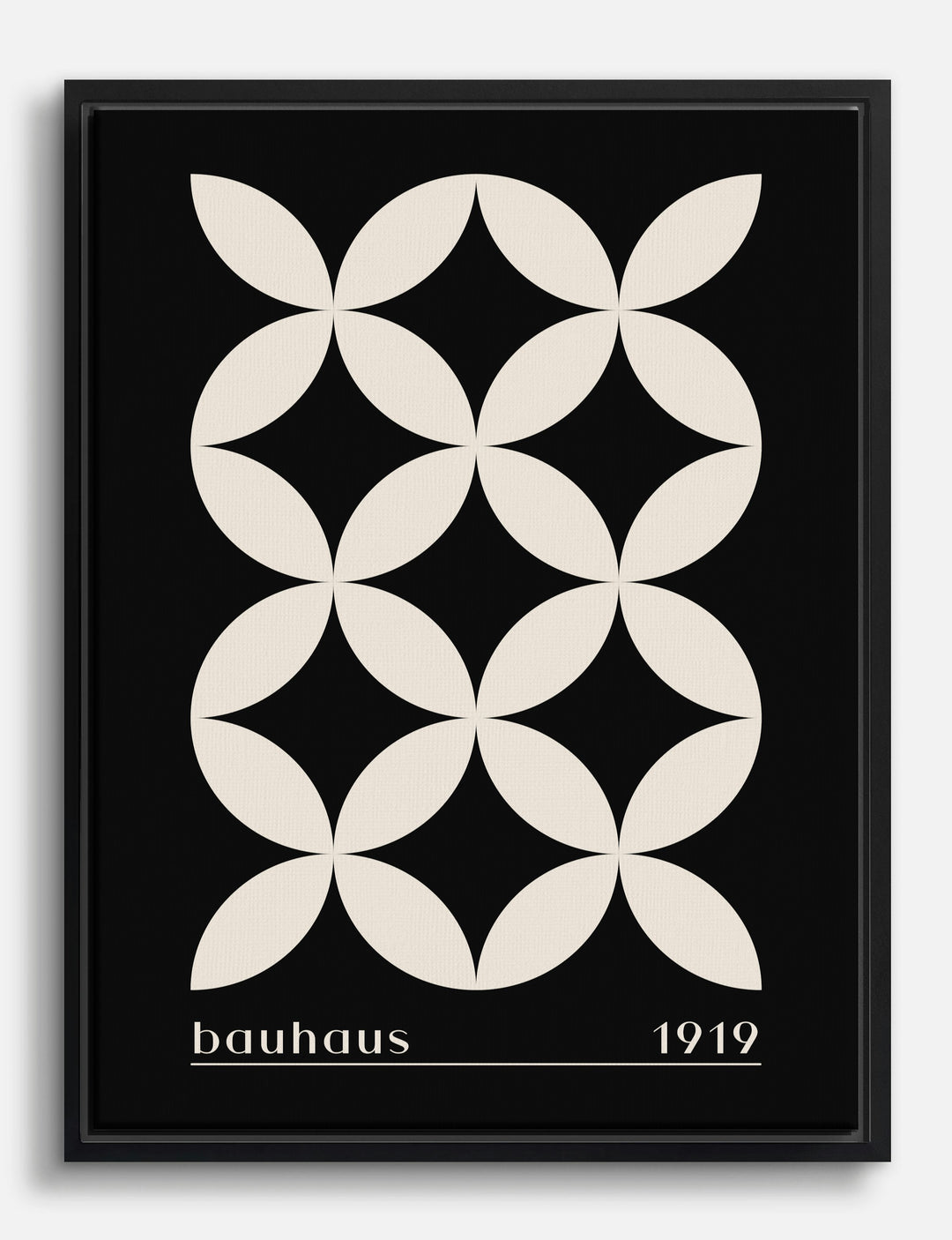 Bold lines, crisp symmetry, and a touch of Bauhaus magic — this piece is all about effortless style. The repeating geometric petals pop against a deep black background, creating instant visual intrigue that sparks conversation and creativity.
