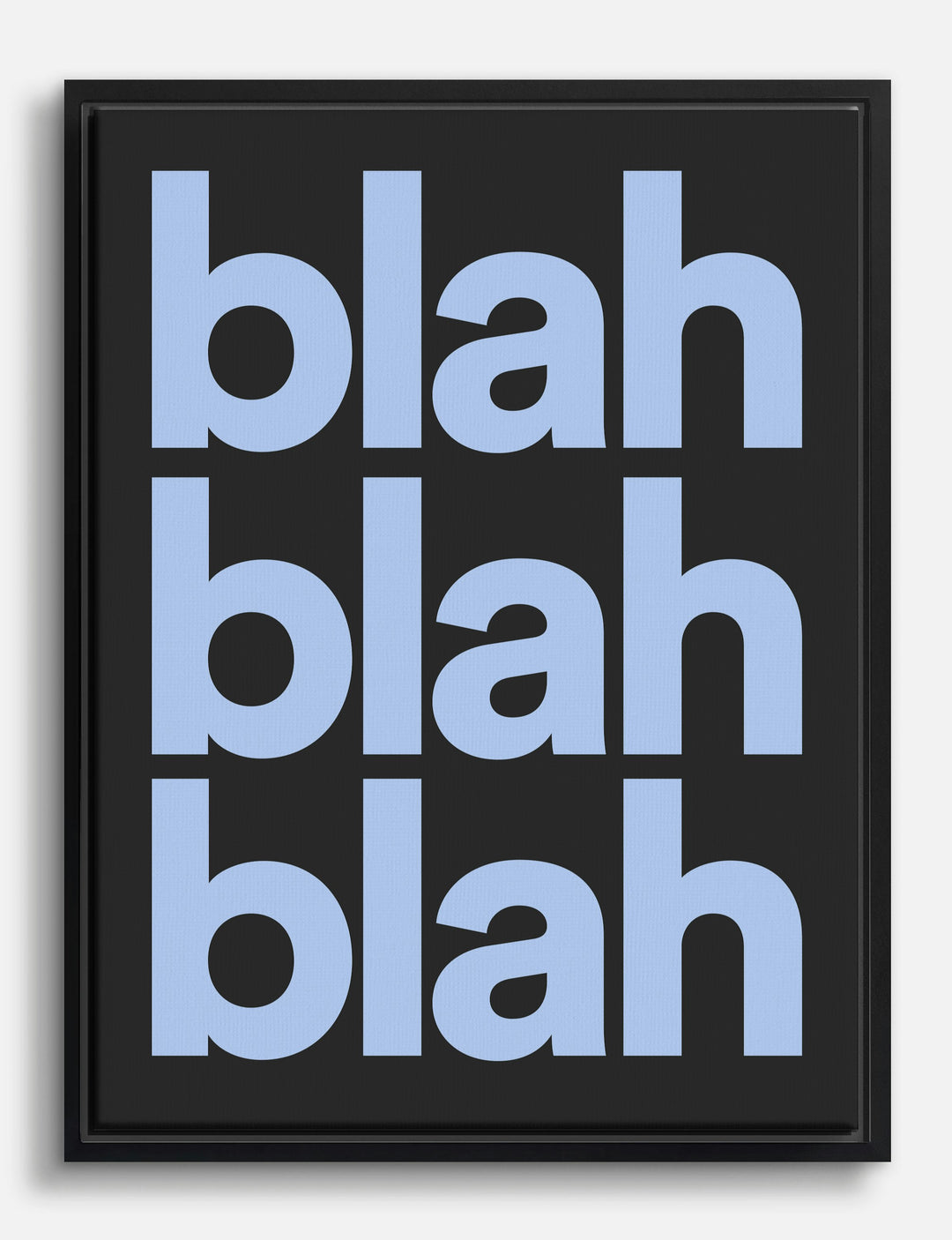 Who says your walls can’t have a sense of humor? This bold, playful print brings a punch of personality with its oversized “blah blah blah” in soothing blue, set against a dramatic grey.