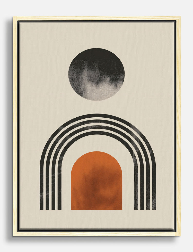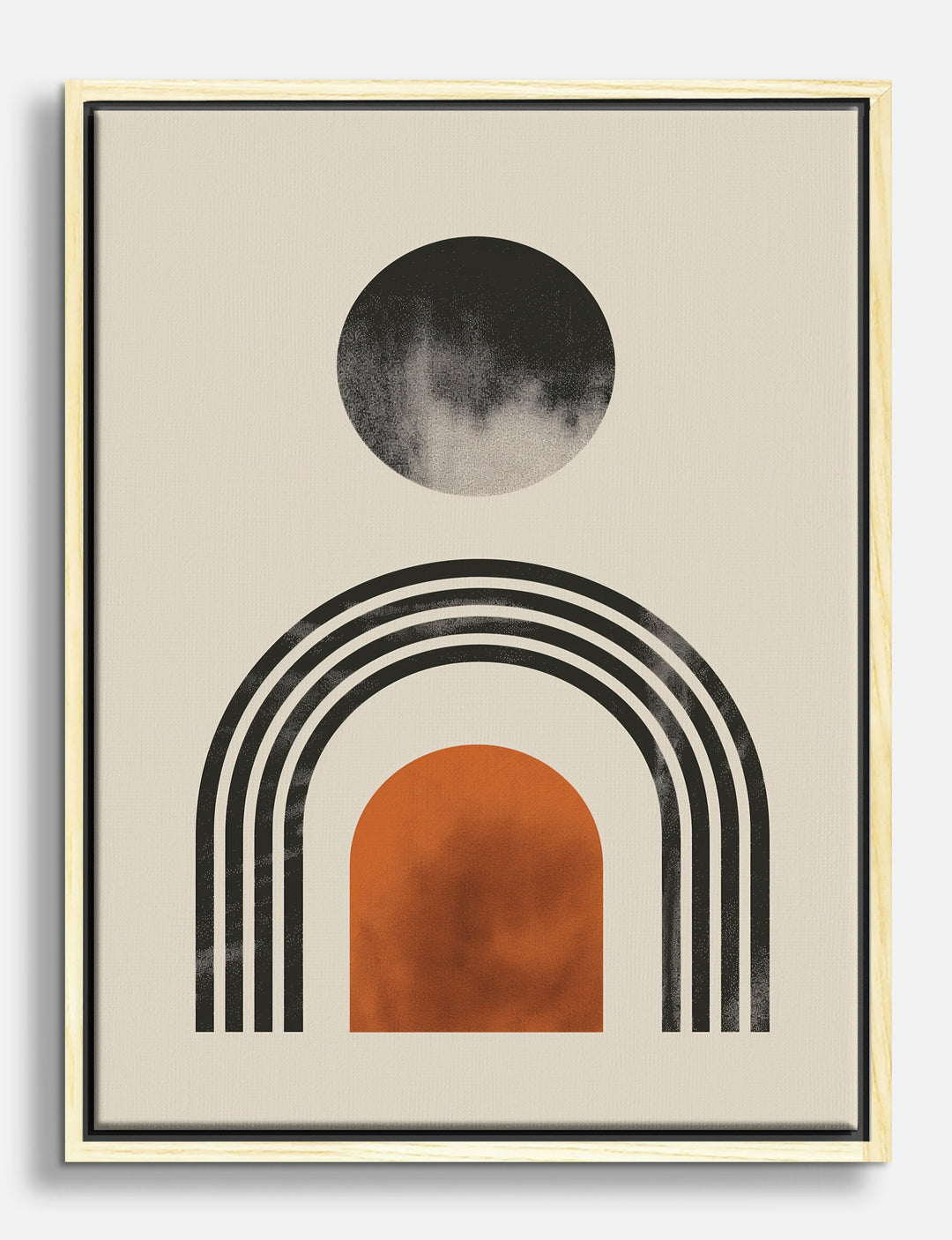 Bold shapes and earthy tones come together in this striking piece, infusing your space with effortless modern style. The interplay between the deep black circle and warm rust arch feels both grounded and uplifting, making it perfect for anyone craving a touch of calm and creativity at home.