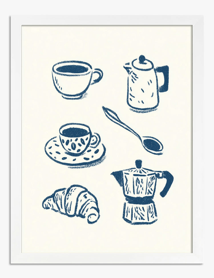 Start your day with a dash of European café charm—these playful coffee illustrations instantly infuse warmth and style into your space. Each line feels like a gentle invitation to slow down, savor the moment, and enjoy life’s simple pleasures. This piece pops beautifully in kitchens and breakfast nooks, but don’t be surprised if it sparks joy in your home office or dining room too. The crisp navy blue and creamy white palette slips seamlessly into everything from modern minimalist to cozy vintage decor. Youll love how these whimsical cups, pots, and pastries bring a sense of comfort and personality to your home. It’s a reminder that great taste is all about the little details—and with Fab, transforming your space is always within reach.