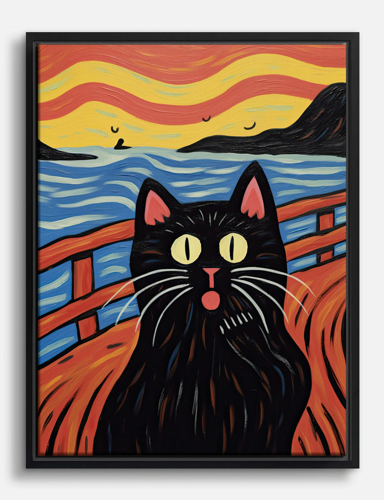 Who says high drama can’t be playful? This bold, expressionist cat channels Munch’s iconic energy, giving your walls instant personality and a wink of humor. The swirling sunset and electrified lines bring a surge of color and movement to any space.