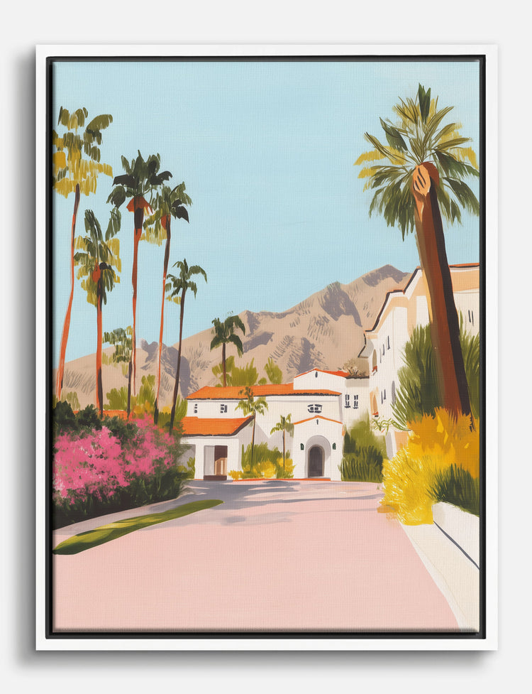 Sunshine, palm trees, and a hint of mid-century magic — this piece brings all the charm of a breezy Palm Springs morning straight to your walls. Soft blushes, gentle greens, and sun-washed yellows set a mood thats both laid-back and effortlessly stylish.