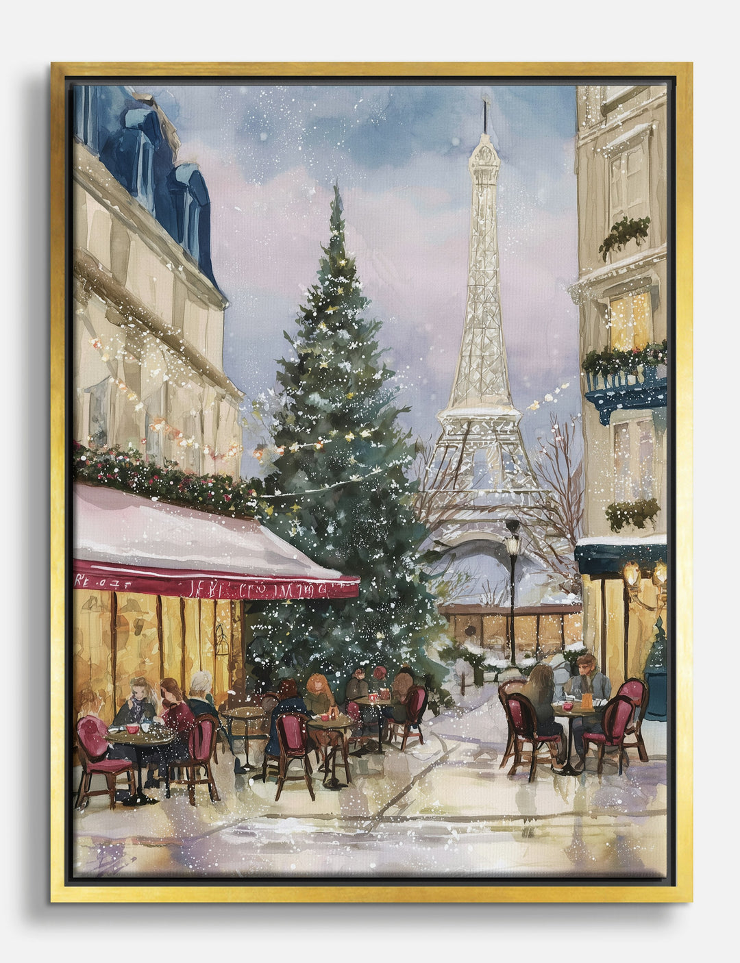 Feel the magic of Paris in winter every time you walk into your home. This cozy street-side café, set against the sparkling Eiffel Tower and a grand Christmas tree, brings festive charm and European elegance to any space. You’ll love how the soft glow of café lights and shimmering snow invite warmth and togetherness, even on the chilliest days.