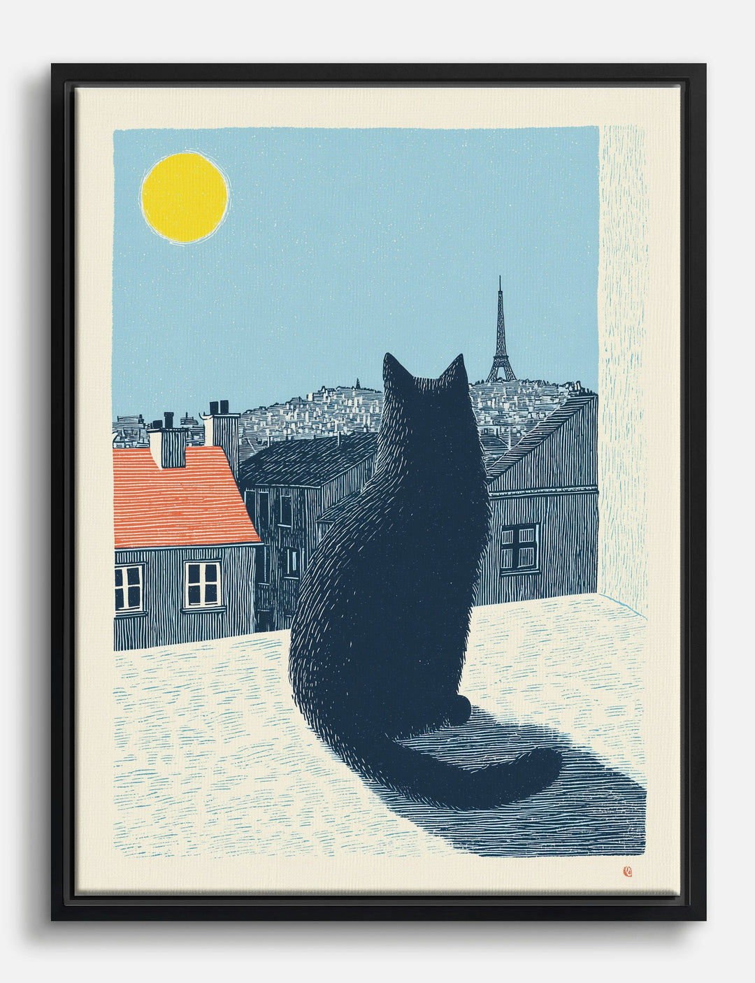 A sunlit morning, a curious cat, and the unmistakable Paris skyline—this piece instantly transports you to a cozy window ledge in the City of Light. There’s an easy calm here, the kind that makes you want to slow down and savor the moment.